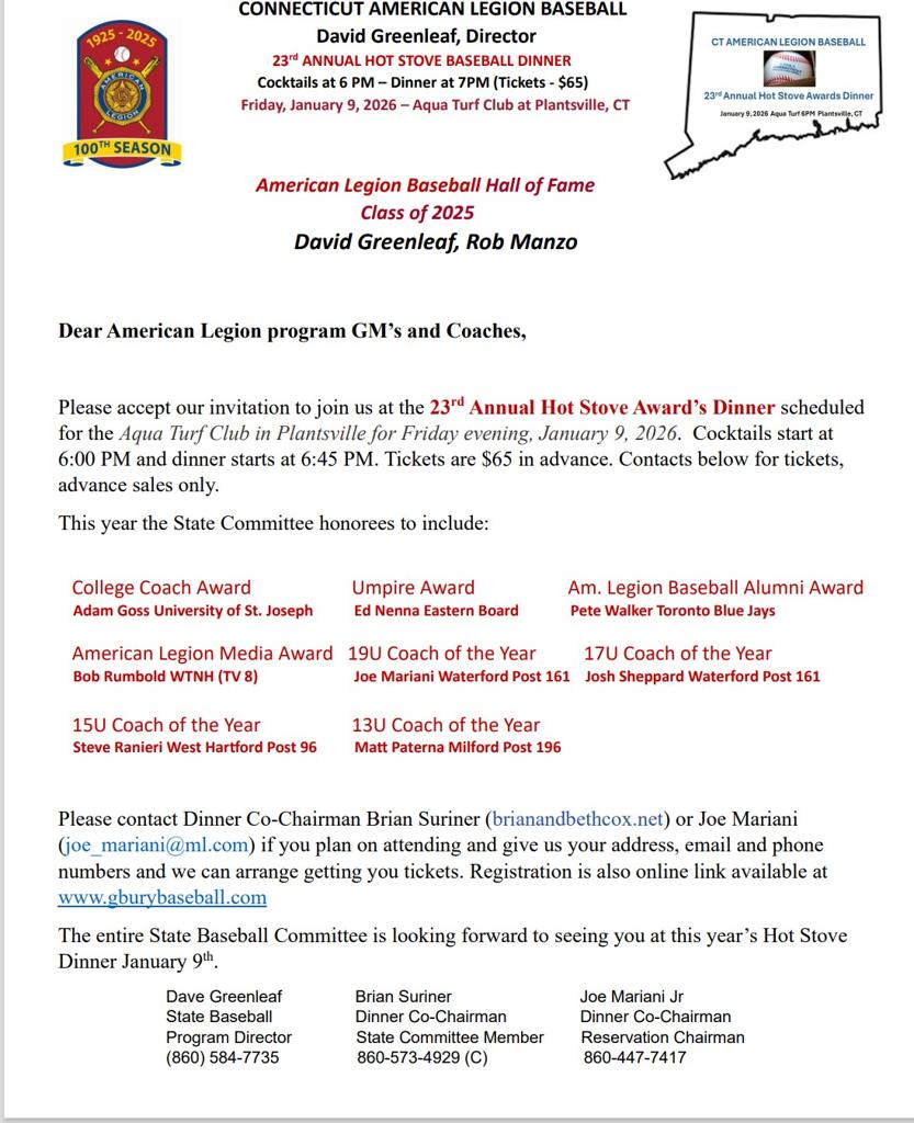 The Registration "2026 Connecticut American Legion Hot Stove Dinner" is not currently available.